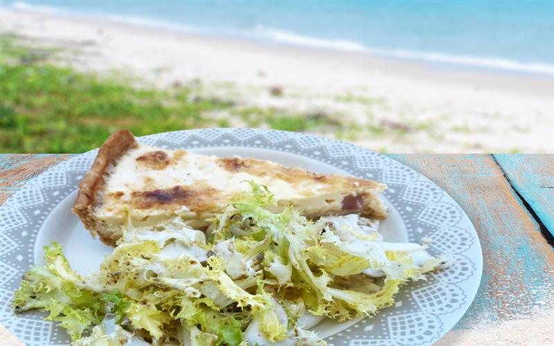 - Emplatamos nuestra porción de Quiche y acompañamos con una guarnición de escarola.